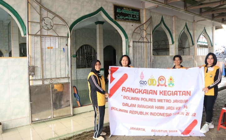 JAKARTA, Menyambut Hari jadi Polwan yang ke 74, Polwan Polres Metro Jakarta Barat menggelar bakti religi bersih bersih rumah ibadah, Jumat, 19/8/2022.