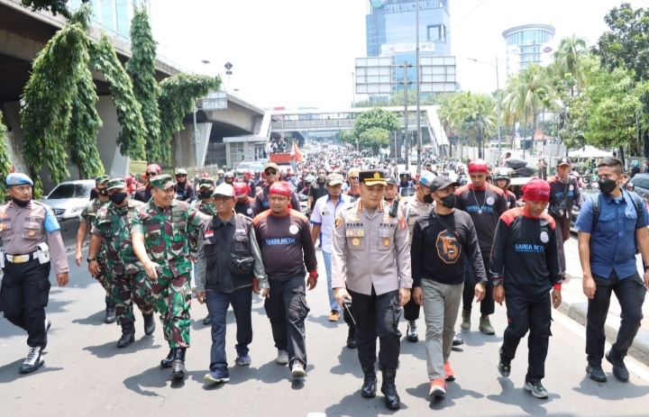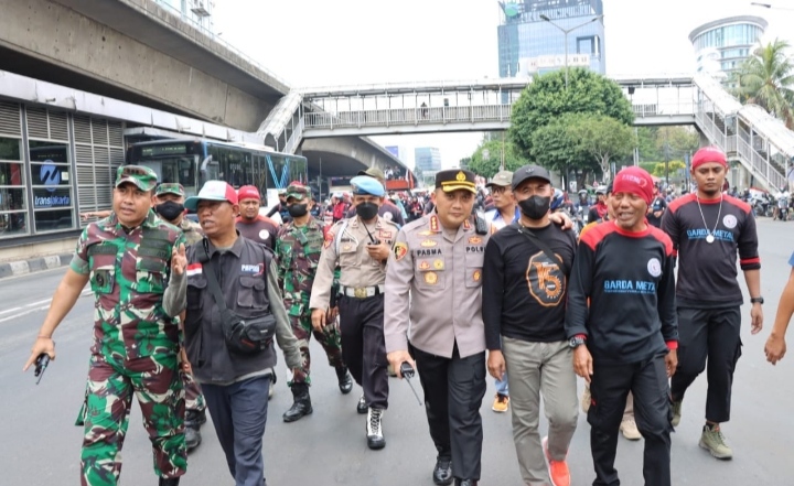 Aksi Kapolres Metro Jakarta Barat dan Dandim 0503 JB Kawal Aksi Long March Buruh Ke Gedung MPR/DPR RI