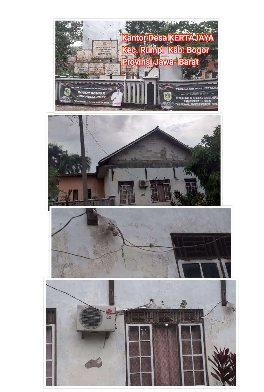 Kantor Desa Kertajaya Kecamatan Rumpin Kabupaten Bogor Jawa Bara terlihat jelas adanya Dugaan Arus listrik tanpa Kilo Meter (KWH) yang di salurkan selain di Kantor Desa tersebut juga Ke rumah warga yamg ada di belakang Kantor Desa tersebut yang mana dalam hal ini sudah jelas jika di biarkan itu akan merugikan Negara. jika benar adanya dugaan tersebut.