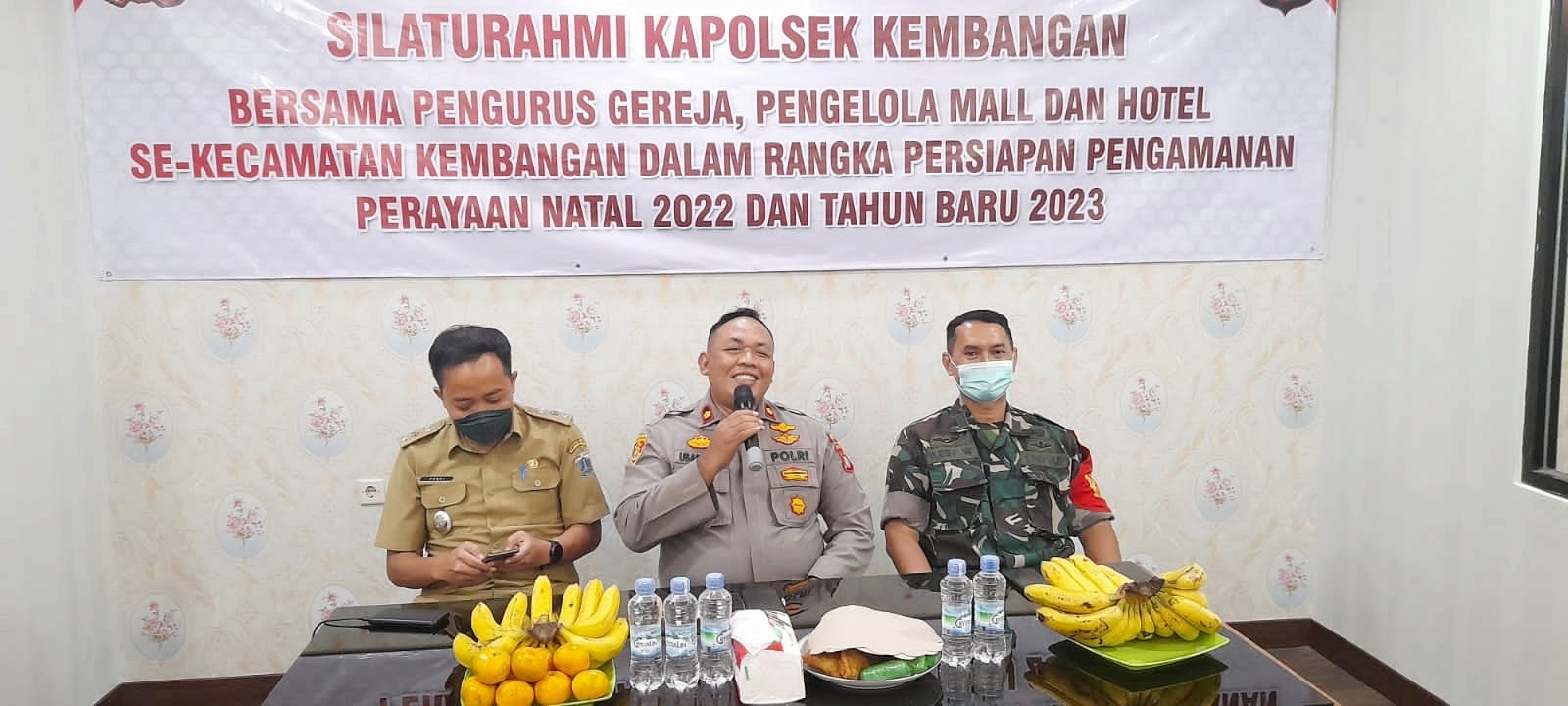 Jakarta Barat, Menjelang kesiapanan pengamanan malam natal dan tahun baru 2023,Jajaran Polsek kembangan melakukan koordinasi dan silaturahmi kepada pengurus gereja, pengelola mall dan hotel yang ada diwilayah kembangan Jakarta Barat, Senin, 12/12/2022.