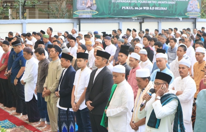 Jakarta Barat – Memperingati hari raya Idul Adha yang ke 1444H, Kapolres Metro Jakarta Barat Kombes Pol M Syahduddi Berserta anggota Polres Metro Jakarta barat melaksanakan sholat Idul Adha berjama’ah bertempat di Halaman Mako Polres Metro Jakarta Barat Jalan Daan Mogot Raya, Kamis (29/06/2023).