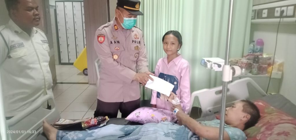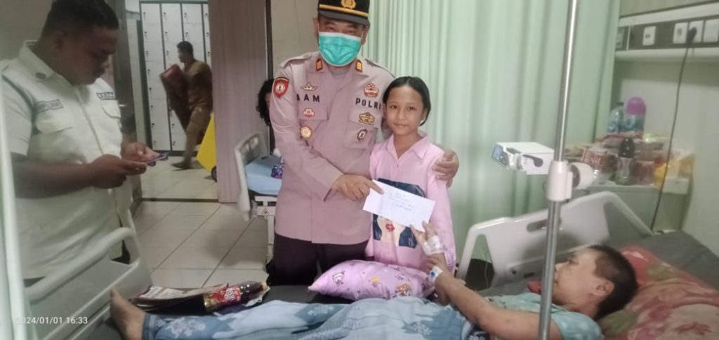 Lebak- Suarametropolnews.com Dalam rangka bentuk kepedulian Polri Baksos Kapolres Lebak Polda Banten AKBP Suyono, S.I.K., yang di Sampaikan oleh PLH Kapolsek Bayah AKP Aam Marto Subroto, S.IP, M.Pd., kepada warga Desa Bayah Barat kecamatan Bayah ibu Yanti yang menderita komplikasi penyakit menahun (jantung, ginjal, gatal-gatal) yang sedang dirawat sudah 4 hari di Ruang Bugenvil kamar 1 lantai 2 RSUD Malingping. Senin sore (01/01/2024).