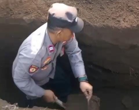 Anggota Polsek Buluspesantren Ikut Menggali Makam Demi Bantu Sahabatnya