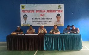 Penyaluran BLT-DD di hadiri oleh Kepala Desa Cinangka, Abdurahman. M.Pd, Sekdes, Pendamping Desa, BPD, Babinsa, tokoh masyarakat, RT, RW serta warga penerima bantuan langsung tunai dana desa penyaluran bantuan langsung tunai dengan penyerahan secara simbolis.