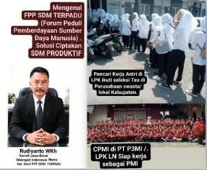 Kami Team Forum Peduli Pemberdayaan SDM Terpadu. Bergerak melakukan Terobosan melakukan kerjasama dgn berbagai Pihak Penempatan Tenaga Kerja /Pengguna Kerja Swasta Dalam & Luar Negeri guna membantu SDM bagi para Generasi anak Bangsa yang Siap Bekerja sama, baik dan membantu para Pencari kerja yang Kesulitan Mendapatkan pekerjaan atau ketidak paham Hal INFO LOWKER ( Informasi lowongan kerja )